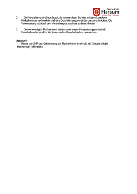 Auf Anregung des Kreistagsabgeordneten Josef Stuke aus Borsum fand nun am 18. Juni 2024 eine Besprechung im Harsumer Rathaus aller Beteiligten statt. Anwesend vom Landkreis waren die Herren Blenke und Höppner, von der Gemeinde Hartmann und Scholz sowie KTA Stuke und Ortsbürgermeister Kallmeyer.